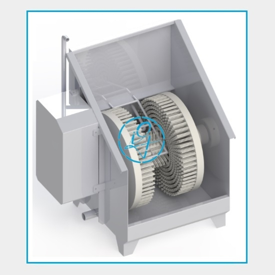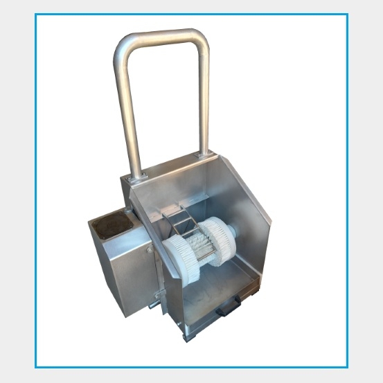 Cepillo central giratorio para limpieza de suela, fabricado en nylon sanitario blanco, montado sobre un eje macizo de acero inoxidable.